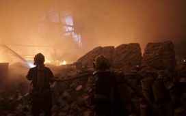 Ακούγεται ένας δυνατός ήχος και ο Γιακουσένκο πέφτει στο πάτωμα. Ο άνδρας με τη στολή παραλλαγής σηκώνει και πάλι ψηλά τη βαριοπούλα.