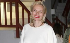 Η Ιωάννα Μαλέσκου, η οποία διανύει τον 6ο μήνα της εγκυμοσύνης της, επέλεξε για την περίσταση ένα total black look, το οποίο περιλάμβανε μια μαύρη leather μακριά φούστα, την οποία συνδύασε με ζιβάγκο και παλτό στην ίδια απόχρωση.