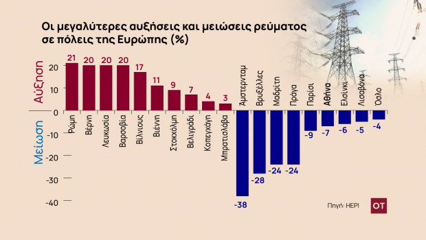 Αντίθετα, στη Βαρσοβία της Πολωνίας η μέση τιμή ρεύματος για τα νοικοκυριά αυξήθηκε 20% καθώς έπαυσε το μέτρο της μείωσης του ΦΠΑ, ενώ η ρυθμιστική αρχή ενέργειας ενέκρινε υψηλότερα τιμολόγια για τους μεγάλους προμηθευτές.