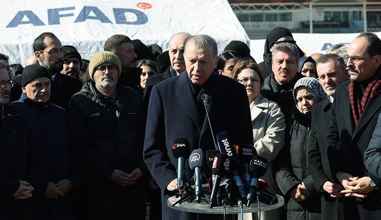Μιλώντας στη διάρκεια επίσκεψής του στη σεισμόπληκτη ζώνη ο τούρκος πρόεδρος δήλωσε ότι εκατοντάδες χιλιάδες κτίρια δεν είναι κατοικήσιμα σε όλη τη νότια Τουρκία και ότι οι αρχές θα λάβουν μέτρα για την ανοικοδόμηση των κατεστραμμένων πόλεων μέσα σε μερικές εβδομάδες.