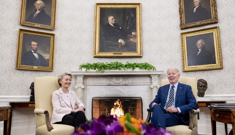 Ο πρόεδρος των ΗΠΑ Τζο Μπάιντεν και η πρόεδρος της Ευρωπαϊκής Επιτροπής Ούρσουλα φον ντερ Λάιεν συμφώνησαν την Παρασκευή να ξεκινήσουν αμέσως διαπραγματεύσεις για μια στοχευμένη συμφωνία που θα διευκολύνει τους Ευρωπαίους να εκπληρώσουν τις απαιτήσεις που θέτει ο αμερικανικός Νόμος για τη Μείωση του Πληθωρισμού σε ό,τι αφορά τις επιδοτήσεις, ανακοίνωσαν οι δύο ηγέτες στην κοινή ανακοίνωσή τους.