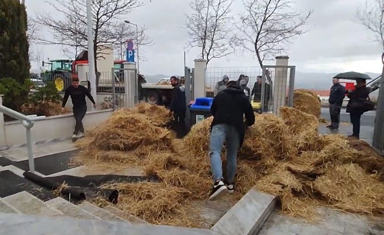 Άχυρα και…κοπριά πέταξαν το μεσημέρι της Κυριακής αγρότες στο κτίριο της Περιφέρειας Δυτ. Μακεδονίας.