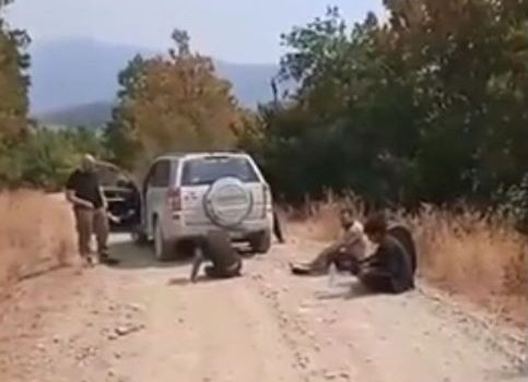 Οπως φαίνεται στο βίντεο παίρνοντας τον νόμο στα χέρια τους έχουν ακινητοποιήσει τέσσερις ταλαιπωρημένους ανθρώπους σε χωματόδρομο, με τον έναν μάλιστα να φαίνεται χτυπημένος.