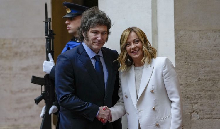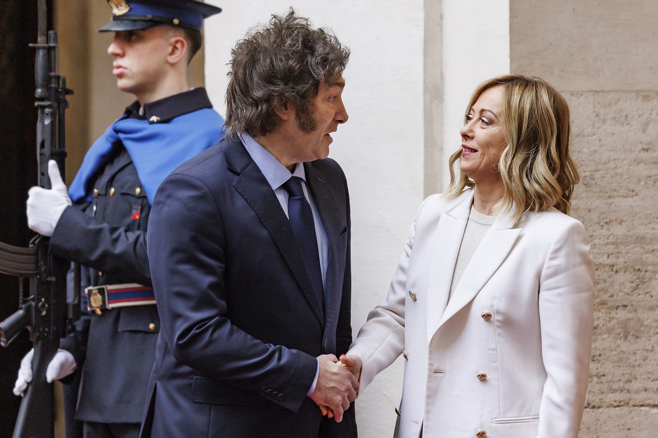 Η Ιταλίδα πρωθυπουργός Τζόρτζια Μελόνι συναντήθηκε το απόγευμα με τον πρόεδρο της Αργεντινής Χαβιέρ Μιλέι στο κυβερνητικό μέγαρο της Ρώμης Παλάτσο Κίτζι.