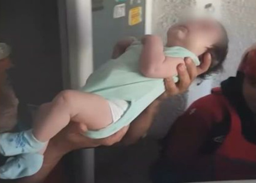 Στο συγκινητικό βίντεο, φαίνεται ο πυροσβέστης να κρατά στα χέρια του το μωρό, με τους συναδέλφους του να τον συμβουλεύουν να προσέχει.
