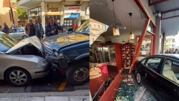 Από το ατύχημα σημειώθηκαν σοβαρές υλικές ζημιές σε τρία σταθμευμένα οχήματα, στο αγροτικό καθώς και στο κατάστημα.
