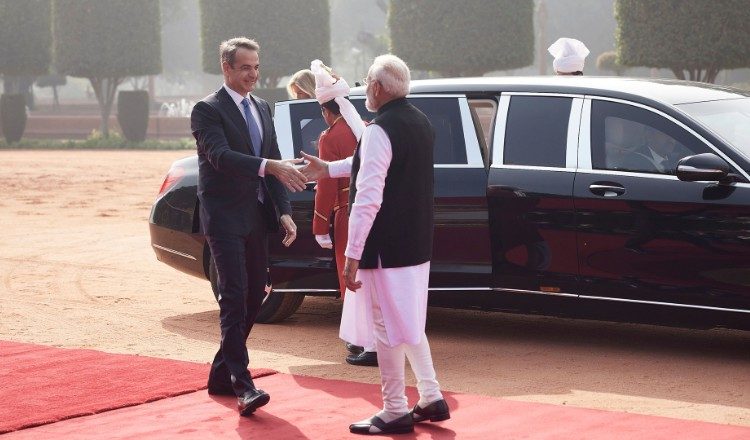 Τη σημασία της στρατηγικής σχέσης ανάμεσα στην Ελλάδα και την Ινδία υπογράμμισε ο πρωθυπουργός, Κυριάκος Μητσοτάκης, σε δήλωση του κατά την επίσημη υποδοχή του, από τον πρωθυπουργό της Ινδίας, Narendra Modi, στο Νέο Δελχί.