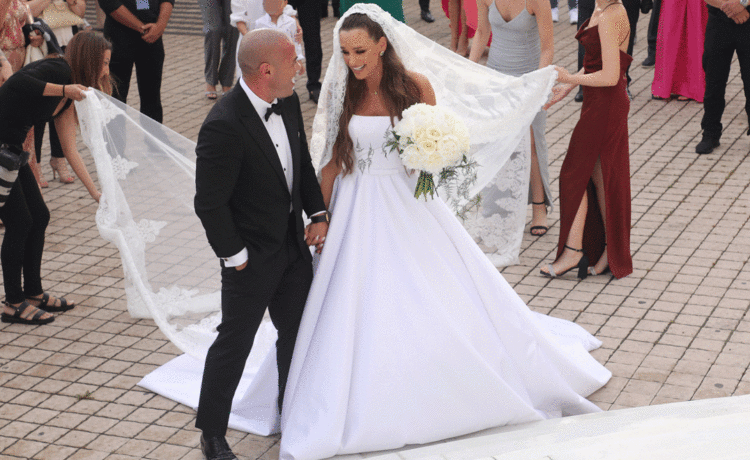 Μάλιστα, ο Μιχάλης Ζαμπίδης αντί να περιμένει την αγαπημένη του να ανέβει τα σκαλιά της εκκλησίας, την πλησίασε και αφού την έπιασε από το χέρι, της πρόσφερε την ανθοδέσμη και μαζί ανέβηκαν τα σκαλοπάτια προκειμένου να μπουν στο εσωτερικό του Ναού για να αρχίσει το μυστήριο του γάμου.