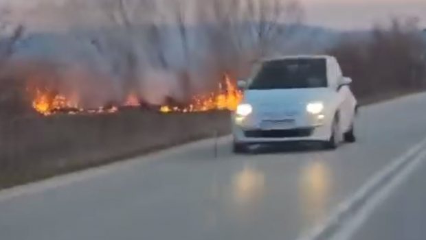 Η φωτιά καίει κυρίως καλαμιές και είναι κοντά στη σιδηροδρομική γραμμή.