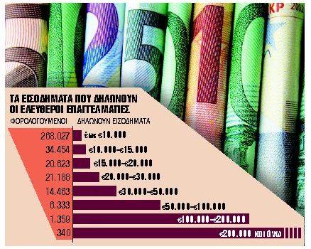 Ανατροπές έρχονται στο φορολογικό τοπίο για 1 εκατ. επαγγελματίες και αυτοαπασχολουμένους. Με επτά στους δέκα επαγγελματίες να εμφανίζουν στην Εφορία ετήσια εισοδήματα που δεν υπερβαίνουν τα 10.000 ευρώ και την Κομισιόν να συνιστά να τροποποιηθεί το φορολογικό σύστημα των αυτοαπασχολουμένων, στο τραπέζι του οικονομικού επιτελείου της νέας κυβέρνησης αναμένεται να βρεθεί σχέδιο με παρεμβάσεις που θα στοχεύει στη διεύρυνση της φορολογικής βάσης και τον περιορισμό της φοροδιαφυγής από αδήλωτα εισοδήματα και ΦΠΑ.