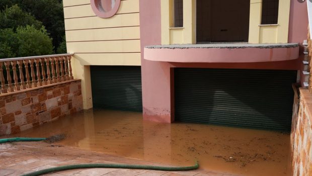 Στην περιοχή του Μέγα Λιμνιώνα με κατεύθυνση προς Θυμιανά, ένα γκαράζ σπιτιού πλημμύρισε με το νερό να φτάνει μέχρι την οροφή.