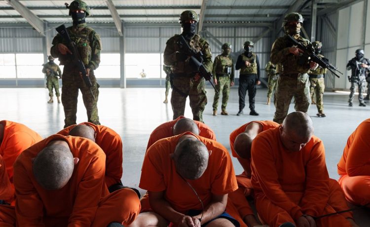 «Το έγκλημα ήθελε να προκαλέσει τον Ισημερινό (…) Σήμερα, ο Ισημερινός απάντησε με πράξεις», διατυμπάνισε μέσω X ο πρόεδρος Νομπόα, συνοδεύοντας την ανάρτηση με φωτογραφίες που εικονίζουν κάπου είκοσι κρατούμενους, με πορτοκαλί στολές, τα χέρια δεμένα, τα κεφάλια ξυρισμένα και σκυμμένα, καθιστούς, έχοντας πίσω τους στρατιωτικούς με αυτόματα τουφέκια και καλυμμένα πρόσωπα.
