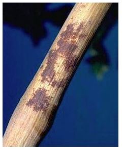 Κληματίδες με σκουρόχρωμες δικτυώσεις στην επιφάνεια είναι απόδειξη έντονης προσβολής κατά την προηγούμενη καλλιεργητική περίοδο