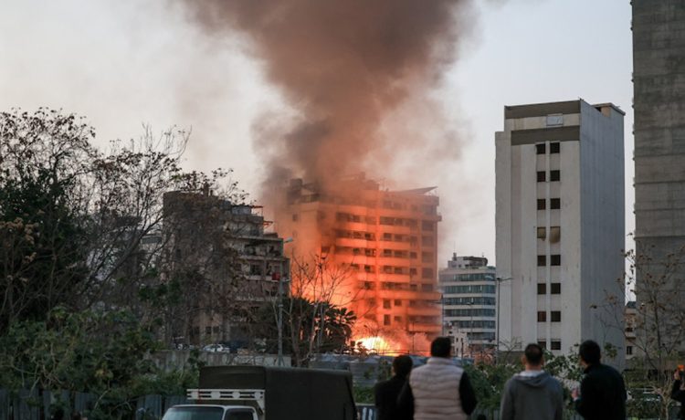 Πλάνα του πρακτορείου Reuters δείχνουν αεροπορικά πλήγματα σε ένα κτίριο που απέχει λιγότερο από ένα χιλιόμετρο από την έδρα της κυβέρνησης του Λιβάνου.