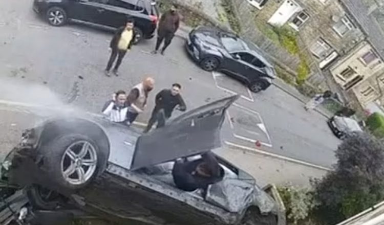 Το περιστατικό συνέβη τη Δευτέρα 20/5, το απόγευμα στο Park Lane του Μπράντφορντ. Το βίντεο που τραβήχτηκε από την κάμερα ασφαλείας του σπιτιού, δείχνει το αυτοκίνητο να γλιστράει στο δρόμο, να χτυπάει στο κράσπεδο και να συγκρούεται με το  σπίτι πριν ανατραπεί και συντρίψει έναν φράχτη κήπου. Τελικά ακουμπάει στο πλάι μπροστά σε ένα από τα σπίτια προτού βγουν οι τρεις επιβάτες από το αυτοκίνητο στο Μπράντφορντ του Γουόρκς. Η αστυνομία λέει ότι αναζητά τώρα δύο άτομα που τράπηκαν σε φυγή από τον τόπο του δυστυχήματος, που συνέβη στο Park Lane.