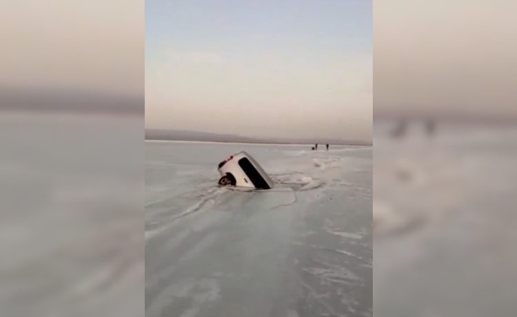 Βίντεο που κυκλοφορεί στα μέσα κοινωνικής δικτύωσης, δείχνει αυτοκίνητο να έχει πέσει σε παγωμένη λίμνη στην περιοχή Πριμόρσκι Κράι της Ρωσίας.