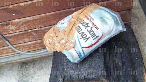 Όπως φαίνεται και στη φωτογραφία που εξασφάλισε το in η βόμβα ήταν μέσα σε μια νάιλον συσκευασία γαντιών μιας χρήσης τυλιγμένη με ταινία ενώ φαίνεται και το φυτίλι.