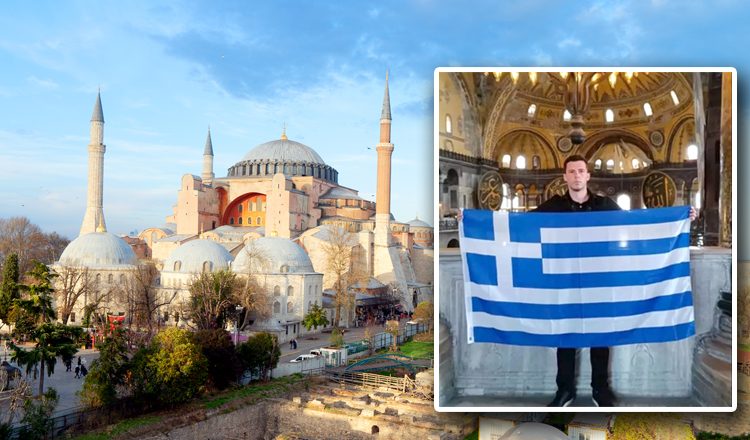 Την ελληνική σημαία άνοιξε Έλληνας τουρίστας, ο Απόστολος Παπαθεοδώρου, στην Αγία Σοφία το απόγευμα του Σαββάτου (17/3) απαθανατίζοντας μάλιστα την στιγμή. Στην συνέχεια δημοσίευσε την φωτογραφία στα social media με την λεζάντα «Αγαπημένη μου Πόλη, για πάντα ελληνική». Το γεγονός προκάλεσε αντιδράσεις με τους χρήστες των μέσων κοινωνικής δικτύωσης να επιτίθενται στον νεαρό.