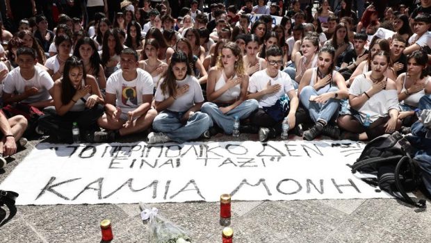 Με τα χέρια τους βαμμένα με κόκκινη μπογιά και με ένα συγκλονιστικό τραγούδι, διαμαρτυρήθηκαν για τη γυναικοκτονία της Κυριακής, μαθητές του μουσικού σχολείου Ιλίου, έξω από το αστυνομικό τμήμα Αγίων Αναργύρων, όπου η 28χρονη δολοφονήθηκε από τον πρώην σύντροφό της.