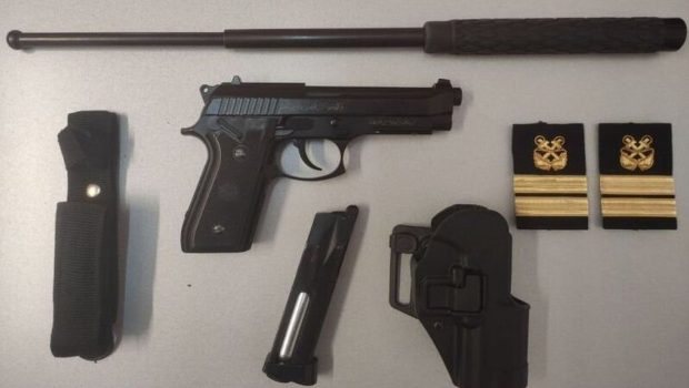 Στο σκάφος, στο οποίο διέμενε βρέθηκε ακόμα μία πλαστική θήκη μέσης πιστολιού, ενώ ο 46χρονος κάτω από το σακάκι του φορούσε λευκό πουκάμισο με επωμίδες, με τον βαθμό του ανθυποπλοιάρχου Λιμενικού Σώματος.