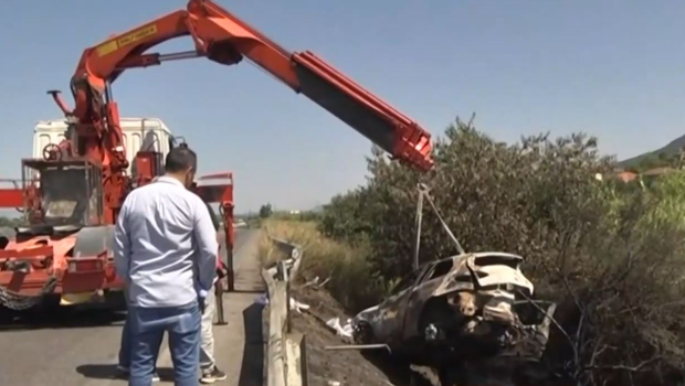 «Η κόρη μου λόγω του ότι έχει πάθει κολικό εντέρου δεν φορούσε ζώνη, ήταν διπλωμένη πάνω στο κάθισμα, είχε ανοιχτό το παράθυρο να την χτυπάει αέρας. Με το που άρχισε να κάνει ελιγμό το αυτοκίνητο, πετάχτηκε έξω από το αυτοκίνητο. Από τις σβούρες που έφερε το αυτοκίνητο πετάχτηκε έξω και αυτό την έσωσε μας λέει και η Τροχαία. Αν έμενε μέσα στο αυτοκίνητο, θα καιγόταν και η κόρη μου μέσα στο αυτοκίνητο. Εκτοξεύτηκε έξω από το παράθυρο, για καλή της τύχη δεν φορούσε ζώνη και ήταν και ανοιχτό το παράθυρο. Πραγματικά είχε άγιο».