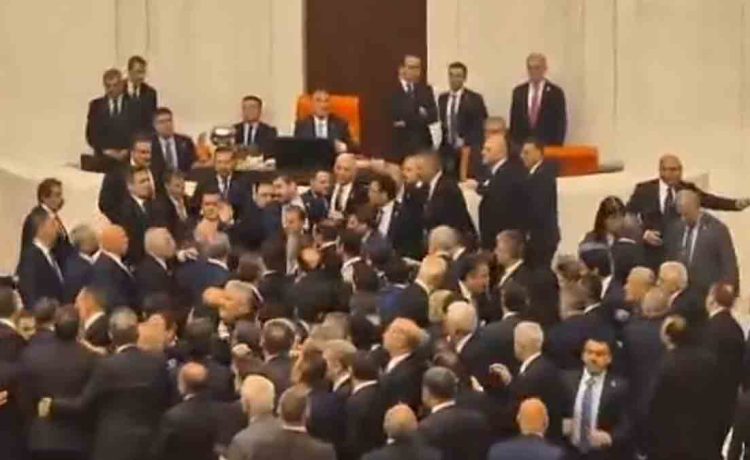 Σε πεδίο μάχης μετατράπηκε η Βουλή στην Τουρκία το μεσημέρι της Τετάρτης, παράλληλα με τη συνάντηση του Έλληνα Πρωθυπουργού, Κυριάκου Μητσοτάκη με τον Τούρκο Πρόεδρο, Ρετζέπ Ταγίπ Ερντογάν.