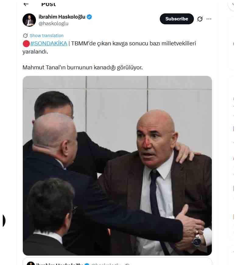 Αρκετοί ήταν αυτοί που τραυματίστηκαν, ενώ ο βουλευτής Μαχμούτ Τανάλ φαίνεται να αιμορραγεί από τη μύτη.