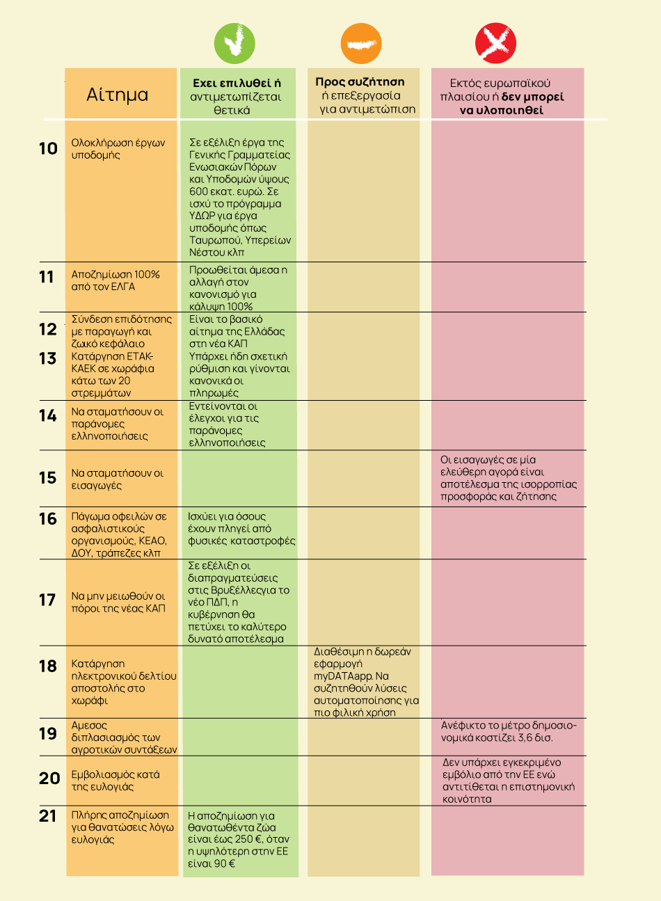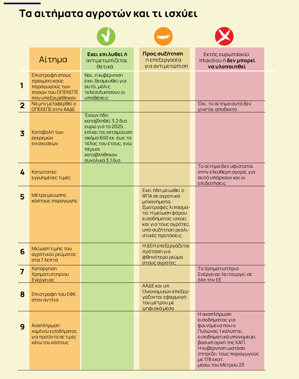 Η ικανοποίηση ή όχι των αιτημάτων όπως την παρουσιάζει η κυβέρνηση