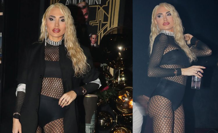 Η γνωστή influencer έκανε μία αρκετά τολμηρή εμφάνιση, καθώς επέλεξε μαύρα εσώρουχα με ολόσωμη διχτυωτή και κολλητή φόρμα, ενώ από πάνω φόρεσε ένα μαύρο oversized σακάκι κατά την είσοδό της στο μαγαζί.