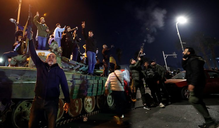 «Η Δαμασκός είναι πλέον ελεύθερη από τα δεσμά του Μπασάρ αλ Άσαντ», ανακοίνωσαν τα ξημερώματα της Κυριακής 08/12 οι αντάρτες που εισήλθαν στην πρωτεύουσα, υποδηλώνοντας ουσιαστικά την ανατροπή του καθεστώτος. Οι ίδιοι ανακοίνωσαν πως ο «τύραννος Άσαντ τράπηκε σε φυγή» και κάλεσαν τους εκτοπισμένους στο εξωτερικό να επιστρέψουν στην «ελεύθερη Συρία».