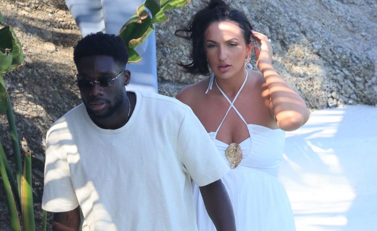 Ο φωτογραφικός μας φακός απαθανάτισε το ερωτευμένο ζευγάρι την ώρα που απολάμβαναν το μπάνιο τους σε γνωστό beach bar του νησιού.