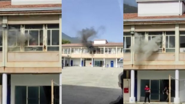 Όπως φαίνεται και από το βίντεο ντοκουμέντο του MEGA, από το παράθυρο βγαίνουν πυκνοί καπνοί, με τους μαθητές να φωνάζουν στους συμμαθητές τους να απομακρυνθούν.