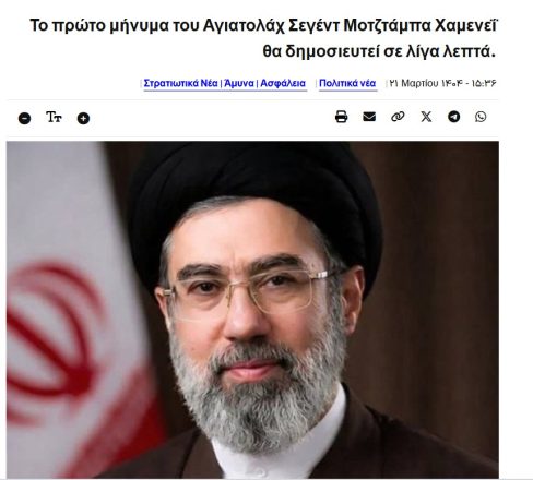 Τα ιρανικά κρατικά μέσα ενημέρωσης αναφέρουν ότι το πρώτο μήνυμα του νέου ανώτατου ηγέτη του Ιράν, Μοτζτάμπα Χαμενεΐ, θα δημοσιευθεί σε λίγα λεπτά, σύμφωνα με το Reuters.