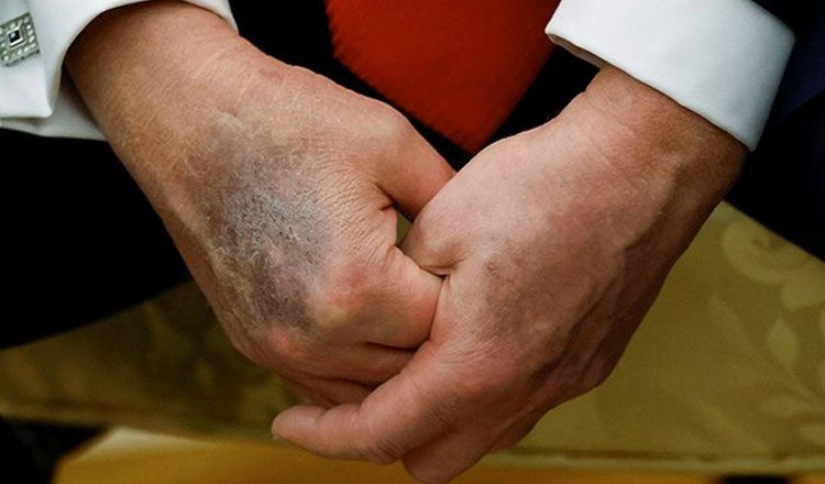 Τη Δευτέρα, 25 Αυγούστου 2025, κατά τη διάρκεια δημόσιας εμφάνισης στον Λευκό Οίκο, ο Ντόναλντ Τραμπ, τράβηξε την προσοχή των παρευρισκόμενων, λόγω ενός έντονου μώλωπα στο χέρι του.