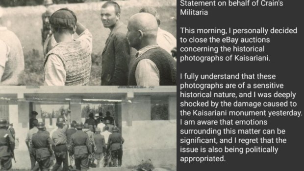 Όπως τονίζει ο κάτοχος της σελίδας, αποφάσισε να κλείσει τη δημοπρασία για τις ιστορικές φωτογραφίες της Καισαριανής, καθώς κατανοεί «πλήρως ότι οι φωτογραφίες αυτές έχουν ευαίσθητο ιστορικό χαρακτήρα».