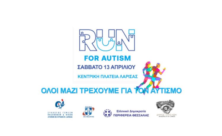 Με το σύνθημα «Τρέχουμε για τον Αυτισμό», δρομείς κάθε ηλικίας, ελεύθεροι ασκούμενοι, μέλη κοινωνικών ομάδων, οικογένειες και μαθητές δίνουν ραντεβού το απόγευμα στην κεντρική πλατεία της Λάρισας, όπου ο αφέτης θα σημάνει την έναρξη των αγώνων, ακολουθώντας τις διαδρομές του «RUN GREECE».