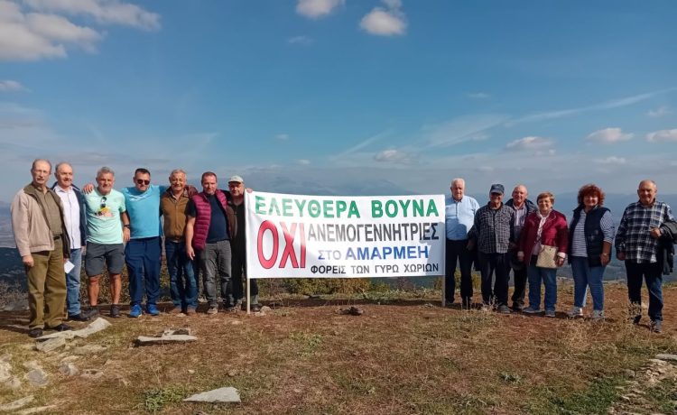 Στο σημείο βρέθηκε και ο 92χρονος Βαγγέλης Τζήκας που έχει περπατήσει όλες τις πλαγιές και κορυφές του Αμάρμπεη με τα ζώα του και επεσήμανε ότι “αυτό το βουνό έχει ιστορία και ζωή, με τις ανεμογεννήτριες θα δώσουν τέλος σε όλα αυτά”.