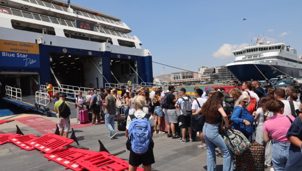 Στην αιχμή της τουριστικής περιόδου με χιλιάδες αδειούχους να περιμένουν να φύγουν, ατελείωτες ουρές έχουν σχηματιστεί στα λιμάνια της Αττικής.