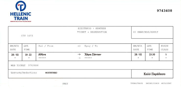 Το εισιτήριο που απεικονίζεται στον πίνακα