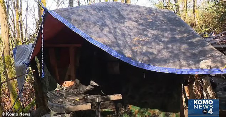 Ένας άστεγος από το Σιάτλ κατασκεύασε ένα καλύβι σε ένα δημόσιο πάρκο μήνες μετά αφότου φέρεται να έκλεψε έναν εκσκαφέα για να ανοίξει μέρος του χώρου αναζητώντας χρυσό.