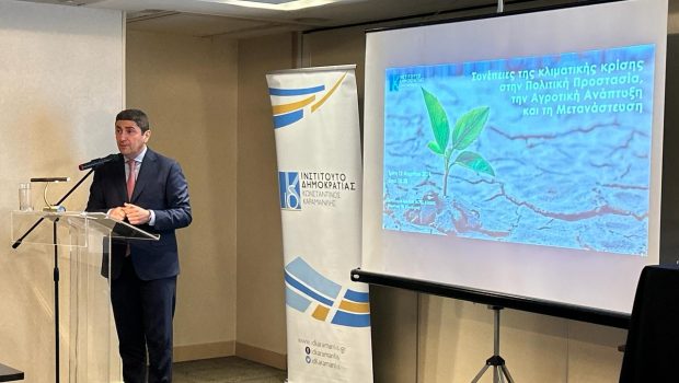 «Είναι επιτακτική ανάγκη να δούμε το θέμα της κλιματικής κρίσης συλλογικά. Οι επιπτώσεις της είναι εδώ και πρέπει να το αντιμετωπίσουμε γενναία και με αποφασιστικότητα», τόνισε ο υπουργός Αγροτικής Ανάπτυξης και Τροφίμων, Λευτέρης Αυγενάκης, σε εκδήλωση του Ινστιτούτου Δημοκρατίας Κωνσταντίνος Καραμανλής με θέμα «Συνέπειες της κλιματικής κρίσης στην Πολιτική Προστασία, την Αγροτική Ανάπτυξη και τη Μετανάστευση».