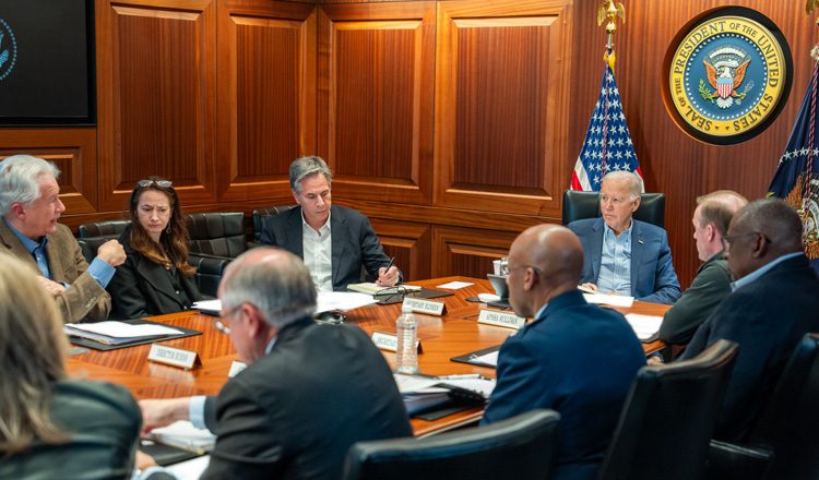 «Η δέσμευσή μας στην ασφάλεια του Ισραήλ μπροστά στις απειλές του Ιράν και των ενεργούμενών του στην περιοχή είναι ακλόνητη», ανέφερε ο πρόεδρος Μπάιντεν μέσω X, αναρτώντας φωτογραφικό στιγμιότυπο της έκτακτης συνεδρίασης της ομάδας του για ζητήματα εθνικής ασφαλείας η οποία συγκλήθηκε στον Λευκό Οίκο.