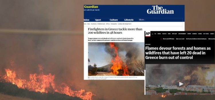 Πρωτοσέλιδο στα διεθνή ΜΜΕ οι πυρκαγιές στην Ελλάδα