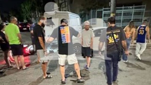 Μετά την σύγκρουση τα δύο άτομα που βρίσκονταν πάνω στη μηχανή σηκώνονται και αρχίζουν να τρέχουν, ενώ τους ακολουθεί ο οδηγός του αυτοκινήτου.