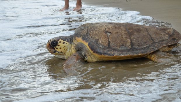 Για τη μεταφορά της τεράστιας καρέτα καρέτα έξω από τον χώρο της παραλίας επιστρατεύτηκε ειδικό μηχάνημα