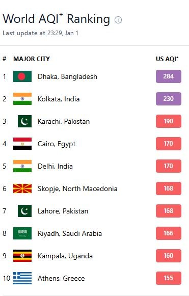 O μέσος όρος της ατμοσφαιρικής ρύπανσης μας τοποθετεί στην πρώτη δεκάδα.