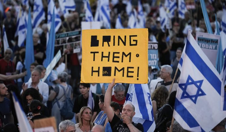 Χιλιάδες Ισραηλινοί συγκεντρώθηκαν το βράδυ του Σαββάτου στο Τελ Αβίβ ζητώντας από την κυβέρνηση να αναλάβει επείγουσα δράση για να εξασφαλίσει την απελευθέρωση των ομήρων που κρατούνται στη Λωρίδα της Γάζας, μια μέρα μετά αφοό ο στρατός ανέκτησε τα πτώματα τριών ομήρων που είχαν απαχθεί από τη Χαμάς.