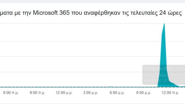 Τα δεδομένα από το Downdetector, το οποίο παρακολουθεί τις διακοπές λειτουργίας, έδειξαν χιλιάδες αναφορές από χρήστες. Οι αναφορές διακοπών για το Microsoft 365, και ειδικότερα για το Outlook, κορυφώθηκαν γύρω στις 23:00 ώρα Ελλάδας πριν μειωθούν και ορισμένοι χρήστες άρχισαν να λένε ότι η πρόσβασή τους αποκαταστάθηκε. Τα περισσότερα προβλήματα επηρέασαν την Ελλάδα στις εφαρμογές Outlook και Exchange.