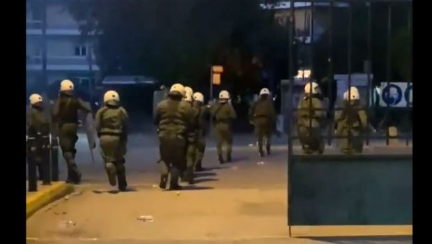 Τότε διμοιρίες των ΜΑΤ επενέβησαν με χρήση χημικών και χειροβομβίδων κρότου λάμψεις προκειμένου να απωθήσουν το πλήθος.