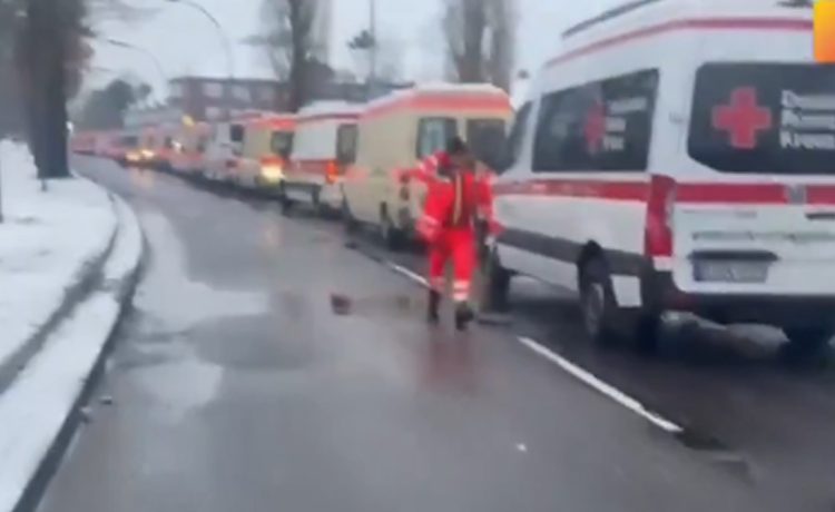 NOW – Dystopian scenes as police warn people of power outage in Berlin, Germany in winter after arson attack leaves part of the city in blackout conditions. Power not to be restored for a week. pic.twitter.com/IGXhkmBzXm